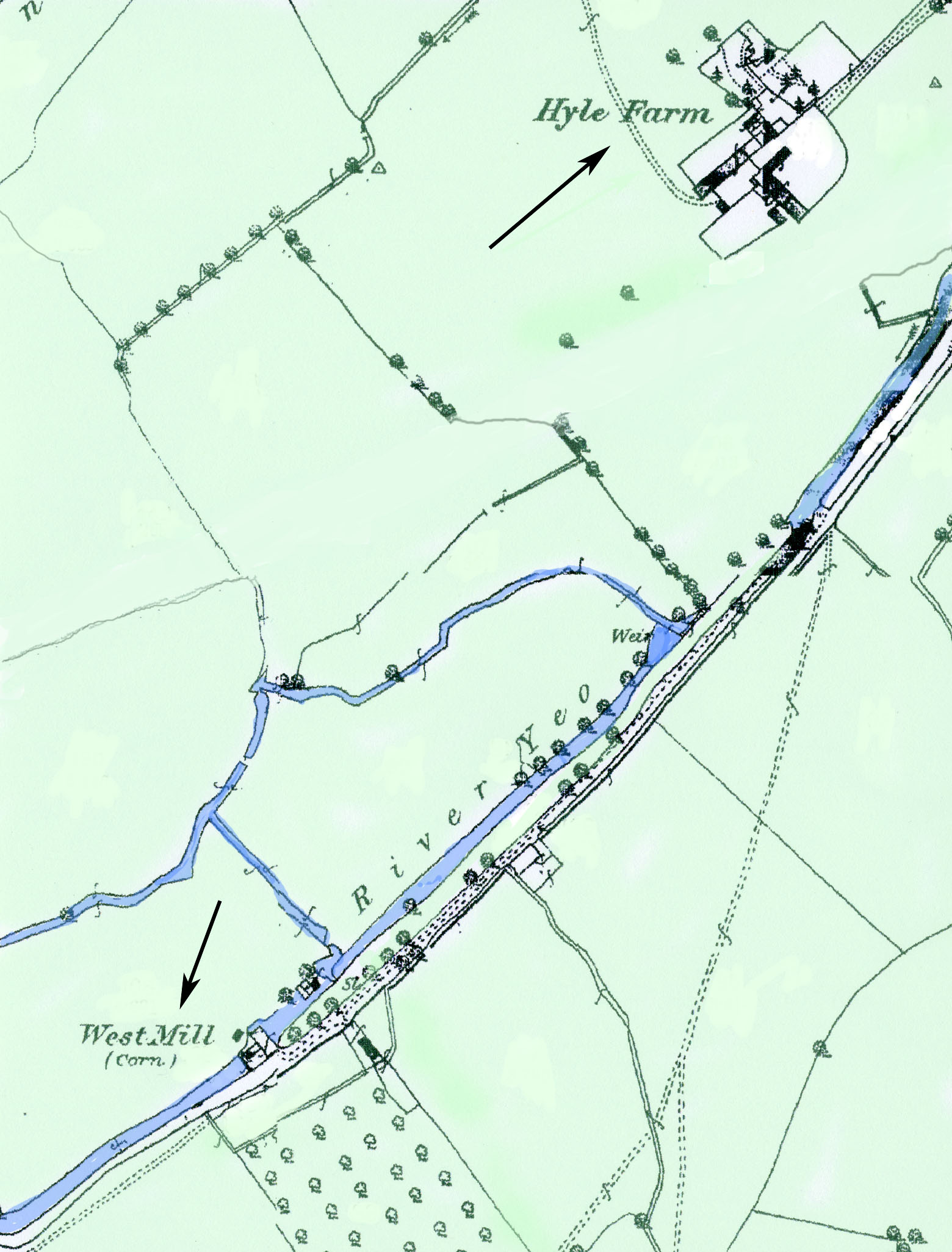 Every now and again, the Lord of the Manor would survey his lands and the resulting document shows the names of the tenants, their properties, rents and herriots (gifts to the Lord). Christopher appeared four times in the Sherborne Manor Survey of 1709 showing that he held two tenancies in Eastbury, one in Primsley Manor and one in Gilland – all areas of Sherborne. The Primsley Manor property is particularly interesting as this was in the vicinity of Hyle Farm in Westbury (where William Ridout farmed) and close to the River Yeo. This last observation may be significant as it transpires that at some point in his life, Christopher became a miller and the West Mill was within Primsley (see map).