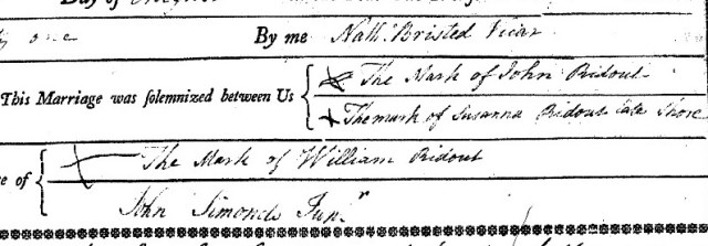 When John and Susanna married in 1781, neither party could sign their name, but this was not an uncommon phenomenon in those days.