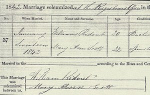 Her marriage certificate showed that Margaret, whose maiden name was BLATCHLEY, had been married to John Trousdell a painter, eighteen years her senior, who had left her widowed in 1866. William and Ellen were together for twenty-six years until death claimed her at the age of sixty-two. She was buried in the Abbey cemetery but, although I visited this closed, rather overgrown wildlife haven, I did not find a stone marking Margaret’s grave.